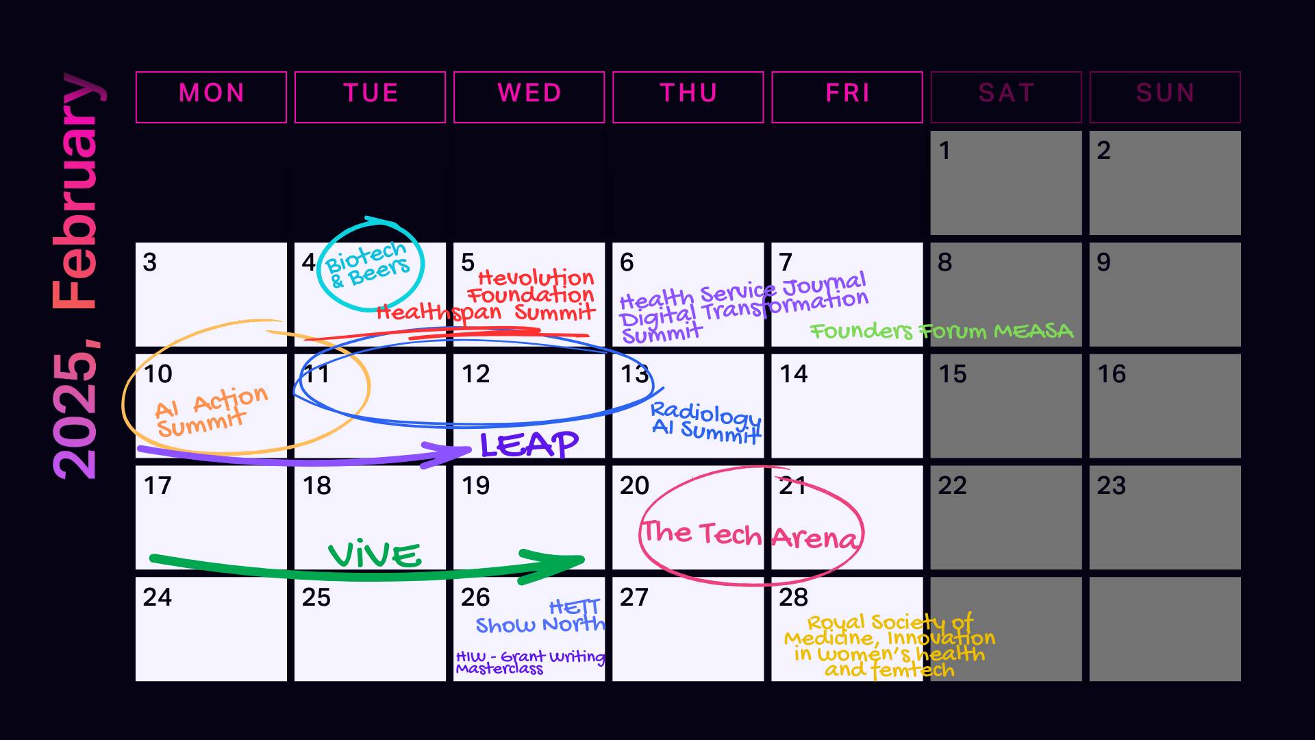 If you’re a healthtech professional, 2025 has already got off to a strong start, with J.P. Morgan and ARAB Health providing a slew of international networking opportunities for the industry’s movers, shakers and dealmakers. And this momentum shows no signs of abating: February brings many valuable opportunities for those working in the nitty gritty of healthtech – see below for our shortlist of events to *add to calendar*.
