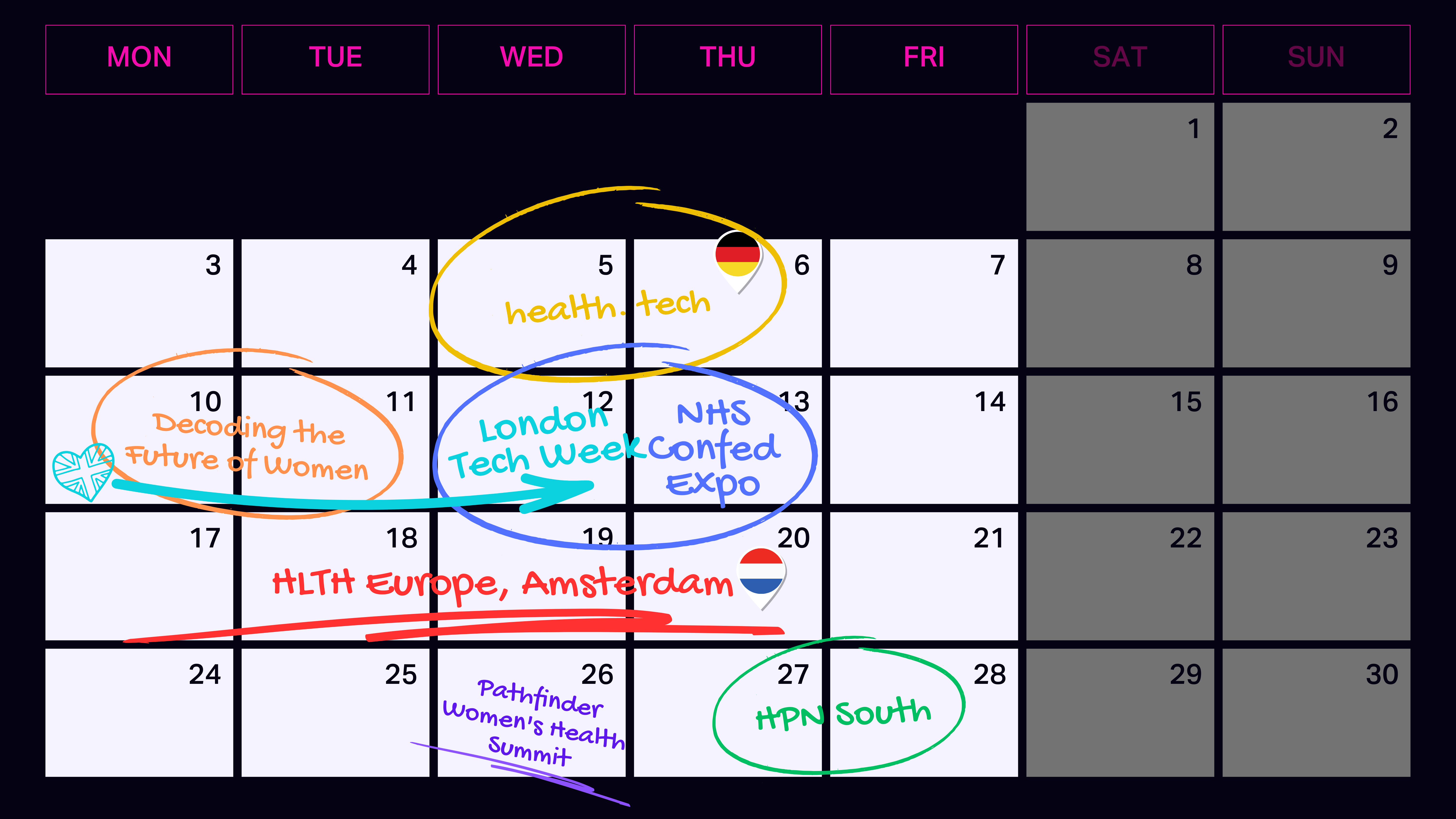 Well hello again, and welcome back to another bumper healthtech events roundup including London Tech Week, HLTH Europe and more.